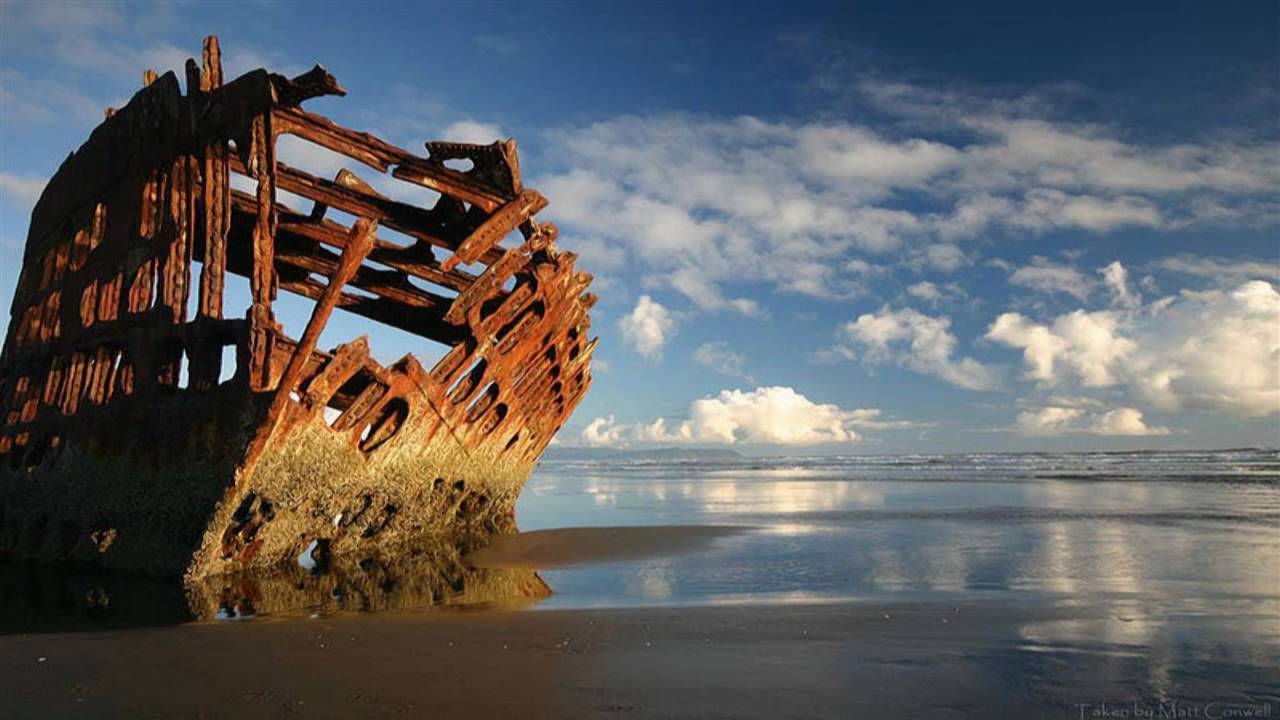 Peter Iredale was a four-masted iron and steel barque. She was built by Ritson’s & Co. of Maryport and launched in 1890. On 28 September 1906 the Peter Iredale sailed from Salina Cruz, Mexico with 1000 tons of ballast and a crew of 27, including a couple of stowaways. She was bound for Portland, under the command of Captain H Lawrence where she was to pick up a cargo of wheat for the United Kingdon. The voyage up the coast was unremarkable until the night of 25 October, when the captain sighted the Tillamook Rock Lighthouse at 3.20am local time. The crew altered course to enter the mouth of the Columbia River in thick mist and a rising tide. Under strong winds, an attempt was made to turn the ship away from the shore, but a heavy northwest squall grounded Peter Iredale on Clatsop Sands (now called Clatsop Spit). High seas and winds drove the ship ashore. A lifeboat was dispatched from Hammond, Oregon and assisted in evacuating the crew. No casualties occurred in the accident.